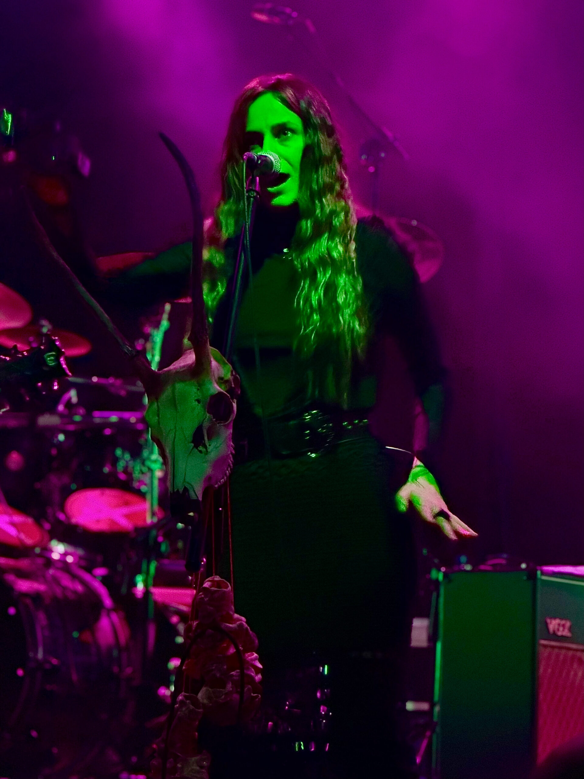 Tutaj zgadzało się dosłownie wszystko – od pierwszego uderzenia w bęben po ostatni akord. Światła precyzyjnie podkreślały klimat każdego utworu, scenografia budowała napięcie i wciągała publiczność w mroczny, rytualny świat, a brzmienie było mocne i hipnotyzujące. Absolutna uczta – surowa i głęboka. Dopracowana w każdym detalu. Thy Worshiper pokazuje, że metal może być czymś więcej, niż tylko ciężarem i dzikością. Ich indywidualny styl jest wyraźny i konsekwentny – czaszki zwierząt, które były obecne na scenie. Prawdziwe bębny nadające rytm oraz „plemienne” charakteryzacje na twarzach muzyków. Każdy element był przemyślany i na swoim miejscu. Nic nie pojawiło się z przypadku. Wszystko tworzyło spójną, metalową podróż przez historię, naturę i ludowe opowieści. To koncert na dwa zmysły – wizualnie i muzycznie.